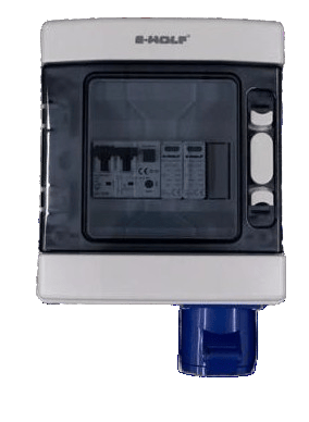 Potência:: 7,2 kW / 32A -- ALIMENTAÇÃO: Alimentação: 230 Vca monofásico ou bifásico --NÍVEL DE PROTEÇÃO: IP65 -- Material da caixa: ABS ( Adaptável: Parede) -- Tomada padrão industrial fêmea: 2P + T 32A 220V -- Acompanha: 1 Disjuntor Diferencial Residual curva C 40A, In<30mA -- 1 Dispositivo de Proteção contra Surtos Uc 275Vca, In 20kA, Imax 40kA, Up <1,3kV -- 1 Tomada fêmea de sobrepor padrão industrial 2P + T 32A 220V -- Peso: 1,5 kg -- Medidas: (C) 295 mm x (L) 195 mm x (A) 115 mm