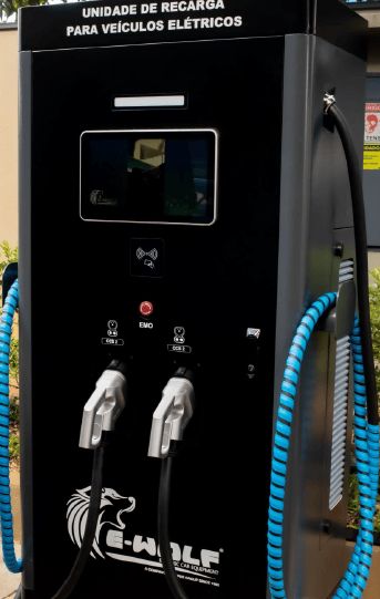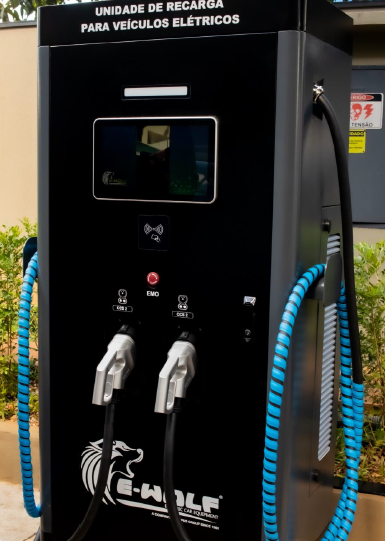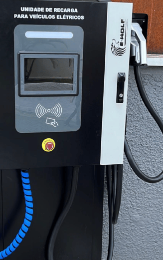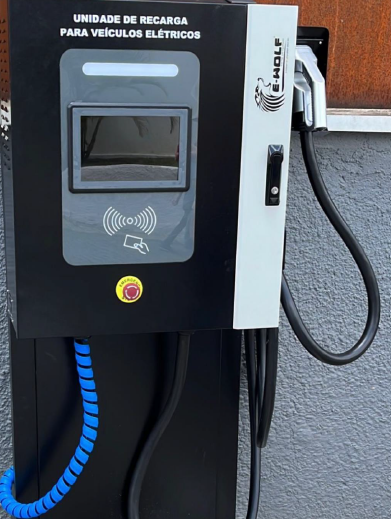 Potência: 30 KW -- Alimentação: 380 Vac (Trifásico) e corrente nominal 45A -- Saída: 1000Vdc / 100A (máximo) -- Nível de proteção: IP 54 -- Interface de comunicação: 4G/WIFI e OCPP 1.6 -- Botão de Emergência -- Display Touch: 10” Interativo